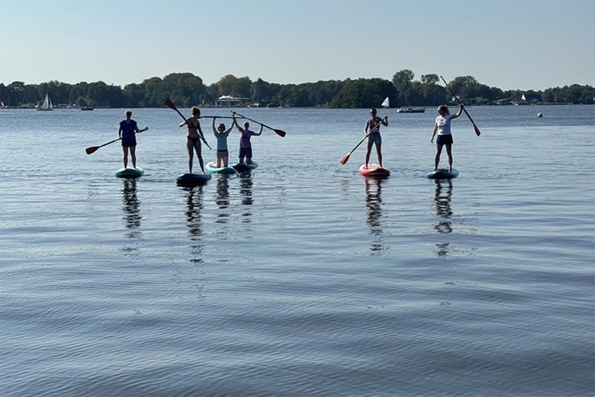 Huur eenvoudig een opblaasbare SUP en geniet samen met je collega's van een sportieve, ontspannen ervaring op het Paterswoldsemeer, de grachten of andere Noord Nederlandse meren. Suppen is laagdrempelig, leuk én een complete workout; ideaal na een lange dag werken of studeren.